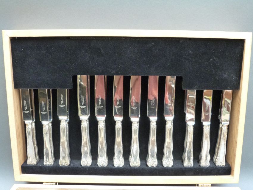 A twelve place canteen of silver plated cutlery, some knives marked Selfridges
