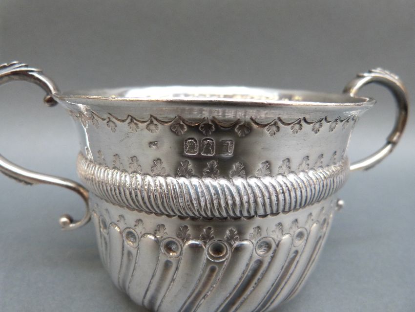 A Victorian Britannia hallmarked silver porringer in the Queen Anne style, London 1899, maker's mark indistinct, weight 173g, width 16cm