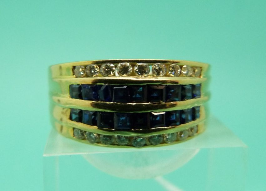 An 18ct gold diamond and sapphire ring (Size V)