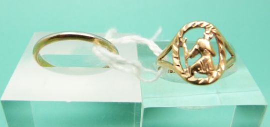 A 22ct gold and platinum wedding ring (2g) and a 9ct gold ring (1.4g)