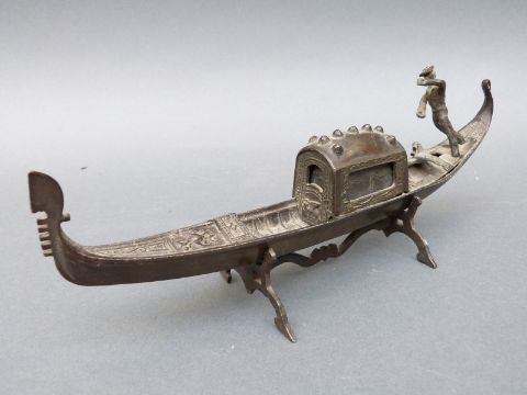 A pair of cast metal Venetian gondolas, one with fitted inkwell, length 30.5cm