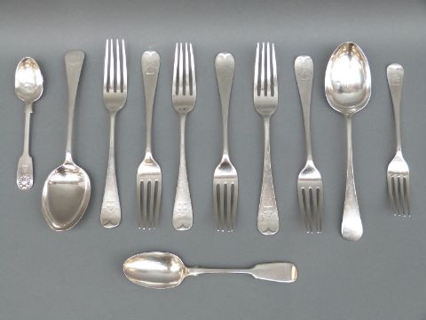 A set of six Edward VII hallmarked silver Old English pattern table forks, London 1903 maker James Wakely & Frank Clarke Wheeler, weight 448g, length 20.5cm together with a quantity of hallmarked silver Victorian and later cutlery, weight 276g
