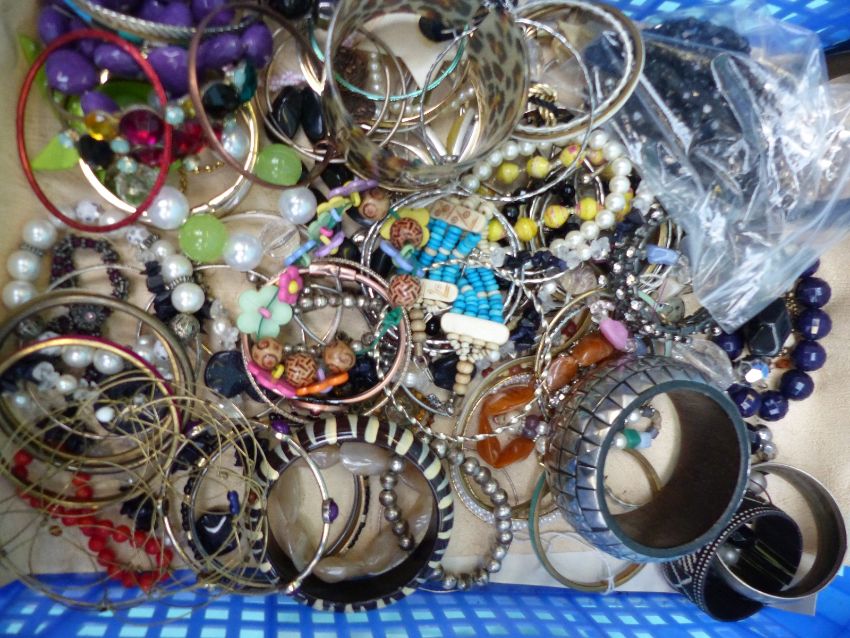 A collection of costume jewellery to include bangles, Trifari brooch etc