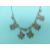 A white metal filigree necklace made up of tiered flower links and another white metal filigree necklace