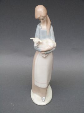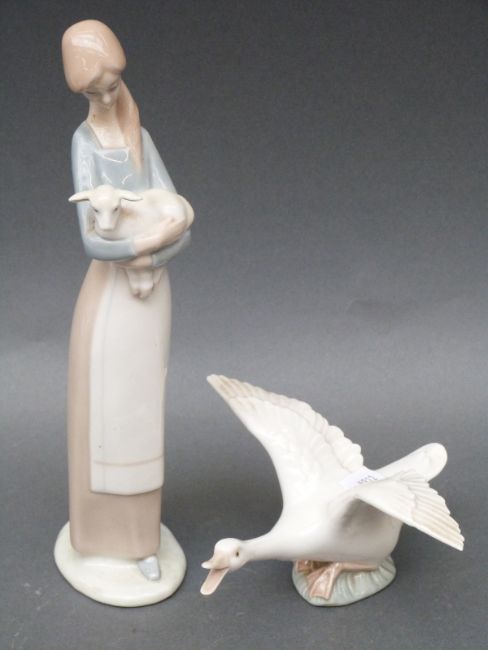 Two Lladro figures of a girl and a goose
