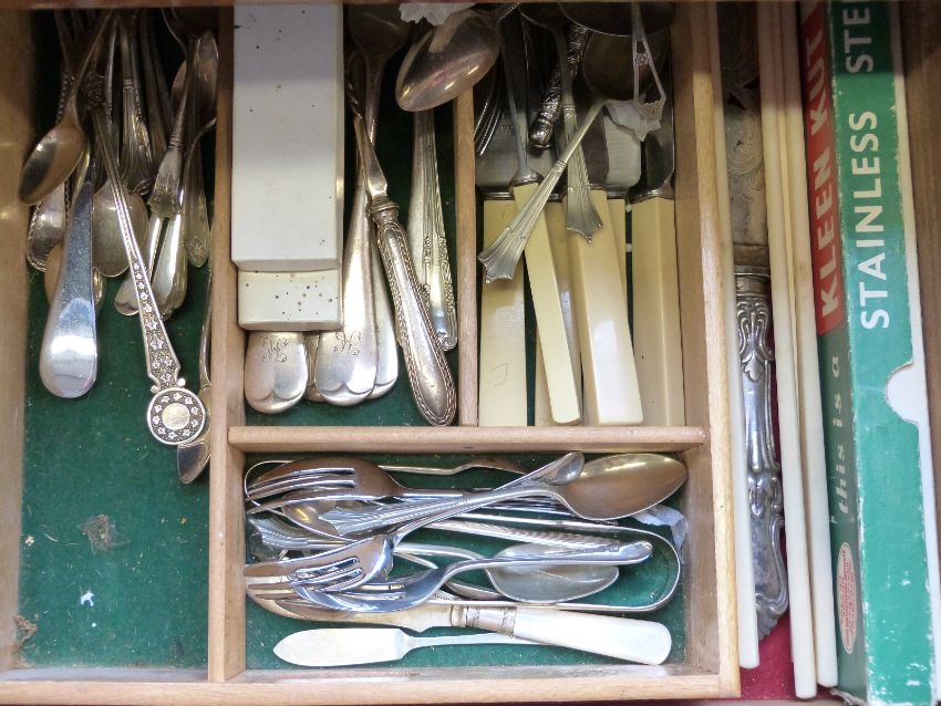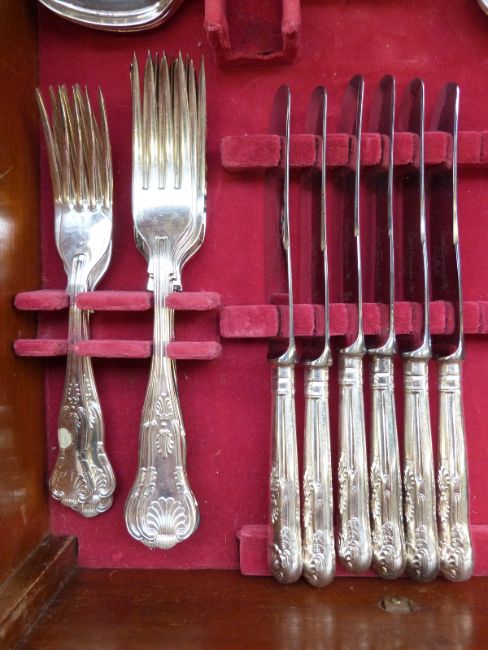 A late 19thC cutlery canteen and contents including King's pattern, hallmarked silver handled fork etc