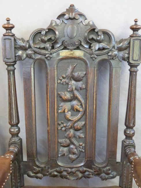 A pair of Victorian carved oak armchairs