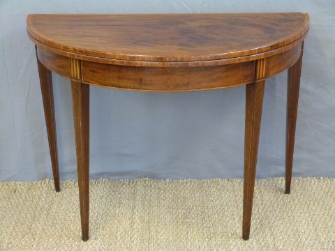 A Georgian mahogany demi-lune fold over card table, W98 x D48 x H72cm