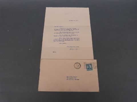 Bing Crosby signed letter dated 1935 in original envelope together with a Bing Crosby photograph with printed signature, in original envelope together with a signed Dixie Lee (Crosby's wife) letter in original envelope and photograph with printed signature in Bing Crosby envelope