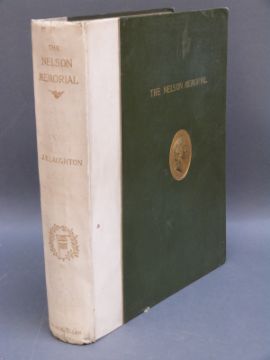 John Knox Laughton, The Nelson Memorial, Nelson and His Companions 1896 no 47 of 100 large paper edition, embossed front cover, coloured fronts, 23 plates as list and Harry Lawrence Brader Lawrence F.S.A. library label