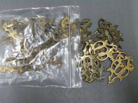 Georgian, Victorian and later brass door furniture suitable for furniture restoration/cabinet making, includes mainly sets of looped drop handles and associated decorative brasswork and some large sets