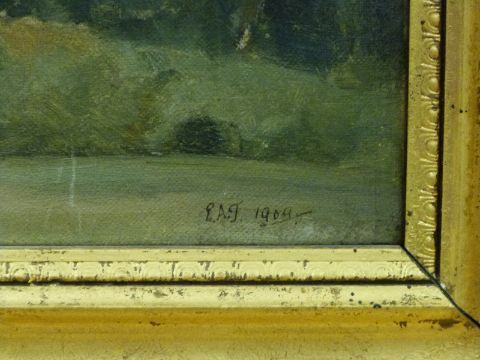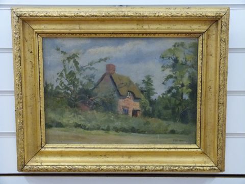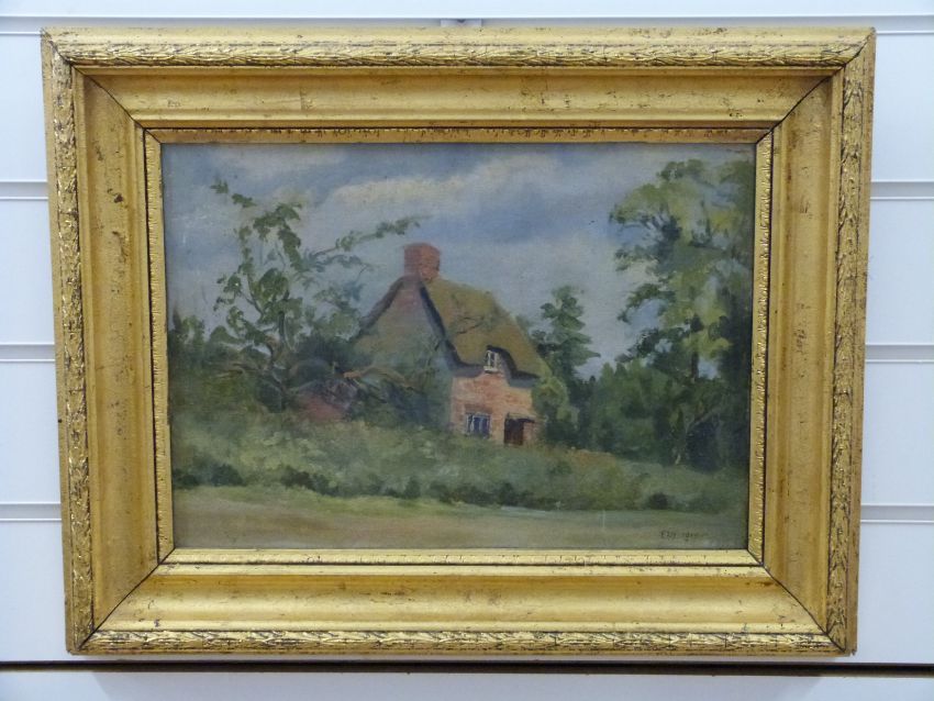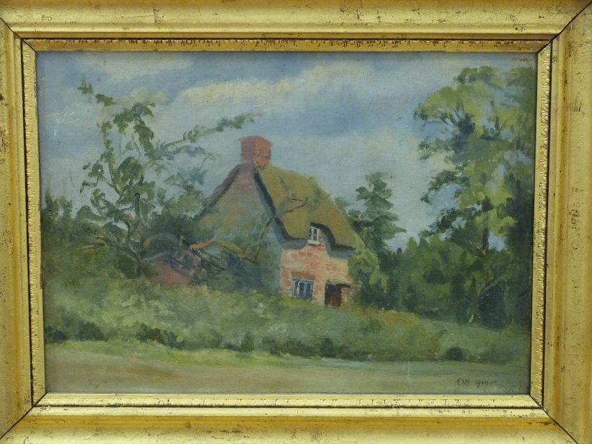 Early 20thC oil on canvas cottage, monogrammed and dated PAJ 1909 lower right, 25 x 35cm