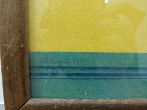 Nick Cudworth watercolour on paper laid on board of a banjo and dominoes, signed and dated 1979 lower left, 67 x 67cm