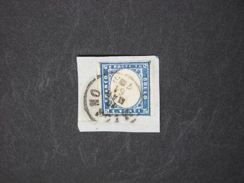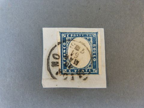Italy 1862 20c blue, SG 2a used on piece