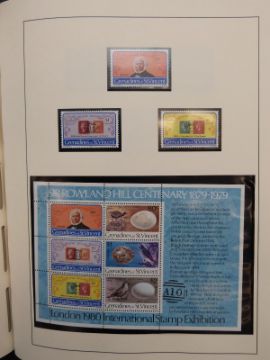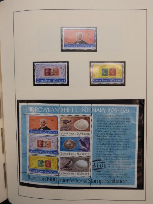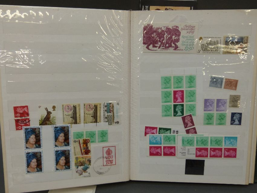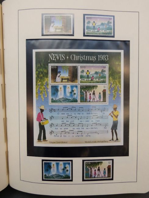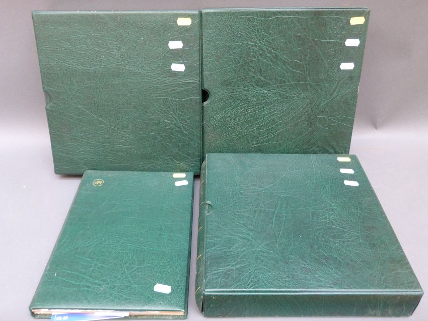 Three albums of St Kitts stamps and a stockbook of mint stamps including GB