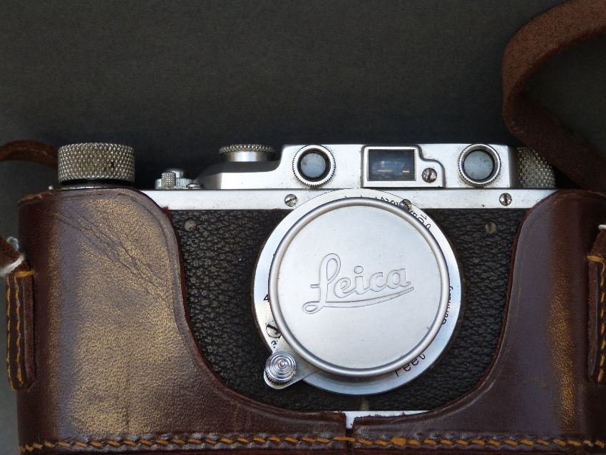 Leica II in chrome (c1936-37) S/N 234091 complete with Elmar 5cm/f3.5 S/N 306556, factory converted dual synchronization, plus original leather ever ready case