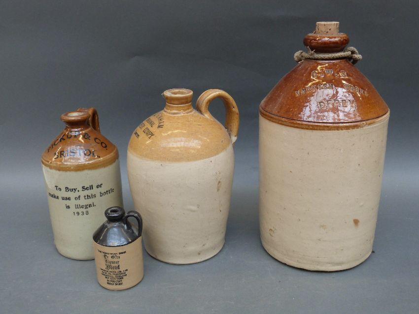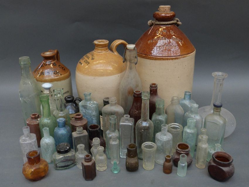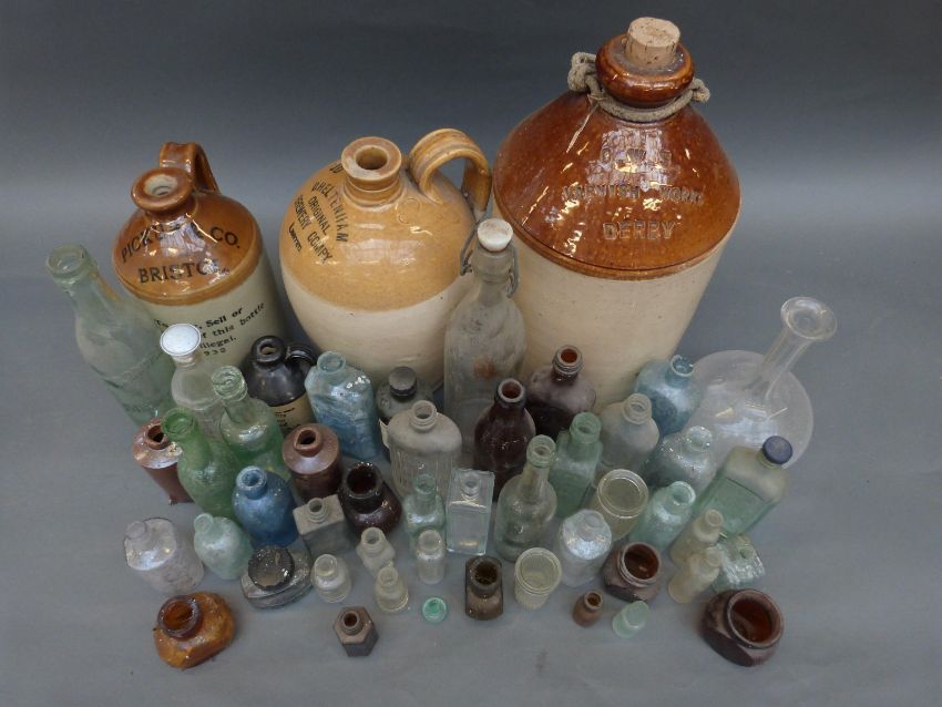 A quantity of named bottles and flagons to include Derby, Cheltenham, Bristol, Gloucester etc
