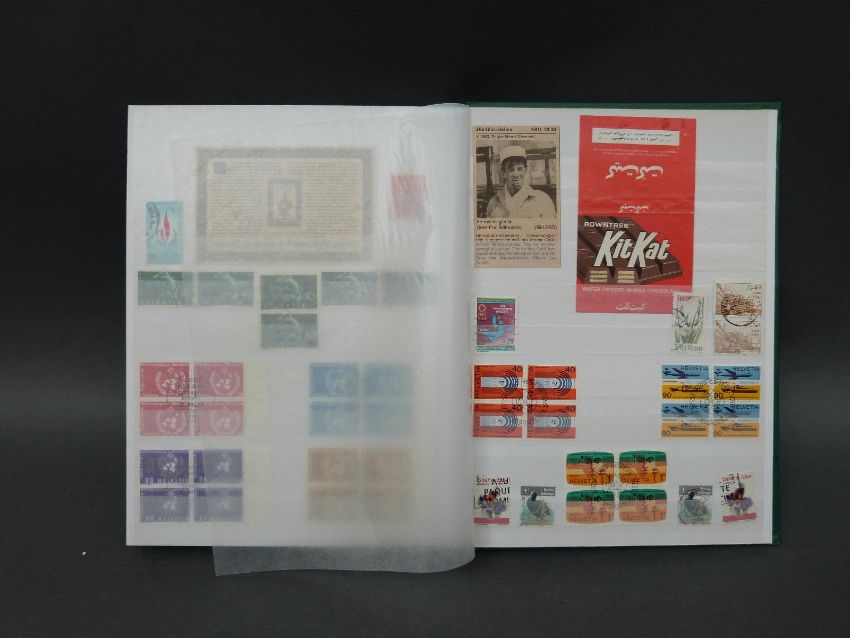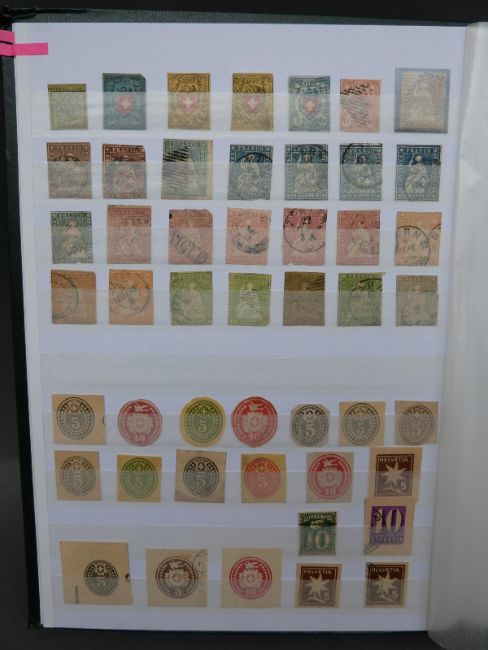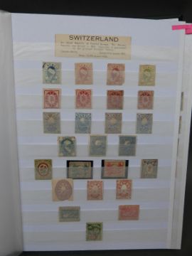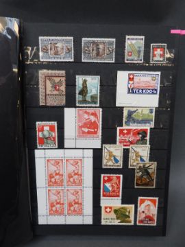 Four stockbooks containing a large collection of stamps from Switzerland, mint and used, from 1850s to modern, including early Hotel stamps, Pro Juvente & Pro Patria issues, Cinderellas, WWII military post, minisheets and a folder containing Swiss postal history with pre-stamps, air mail etc