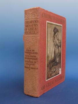 Arthur Rackham illustrated Children's Treasury of Great Stories (London, Daily Express, 1910) six illustrations plus other artists. Red cloth with Rackham illustration on front board