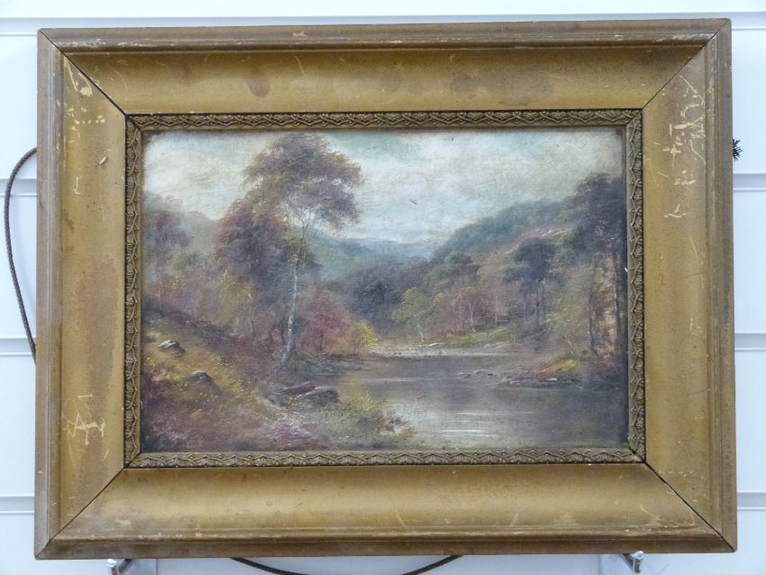 A pair of 19thC oil on canvas landscapes one 'On the Elan Whayader' the other 'Loch Awe' believed to be G Willis Pryce, each 20 x 30cm in gilt frames