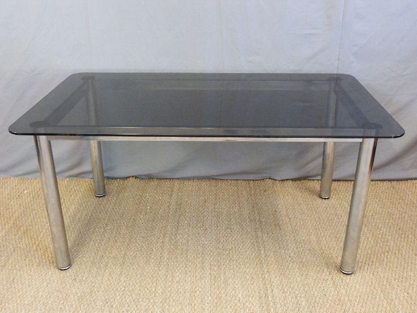 A retro glass and chrome table (H70 x L153 x W91cm)
