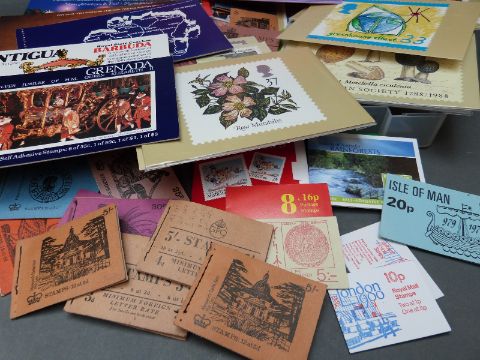 A box of PHQ cards and stamp booklets