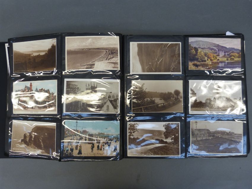 An album of approximately 450 mainly early 20thC UK topographical postcards including Wales, Isle of Wight, Ireland, Scotland, English coastal, Worcester, Cheltenham and other local interest etc