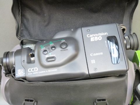 A quantity of camera equipment to include Canon video camera, Frank Nipole 12x50 binoculars, Jessops video transfer unit etc