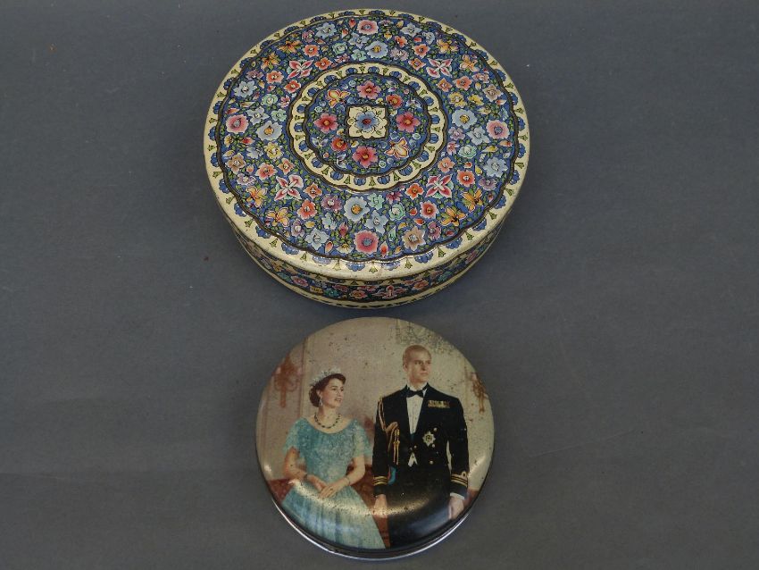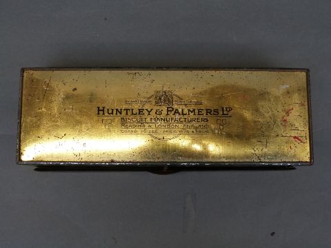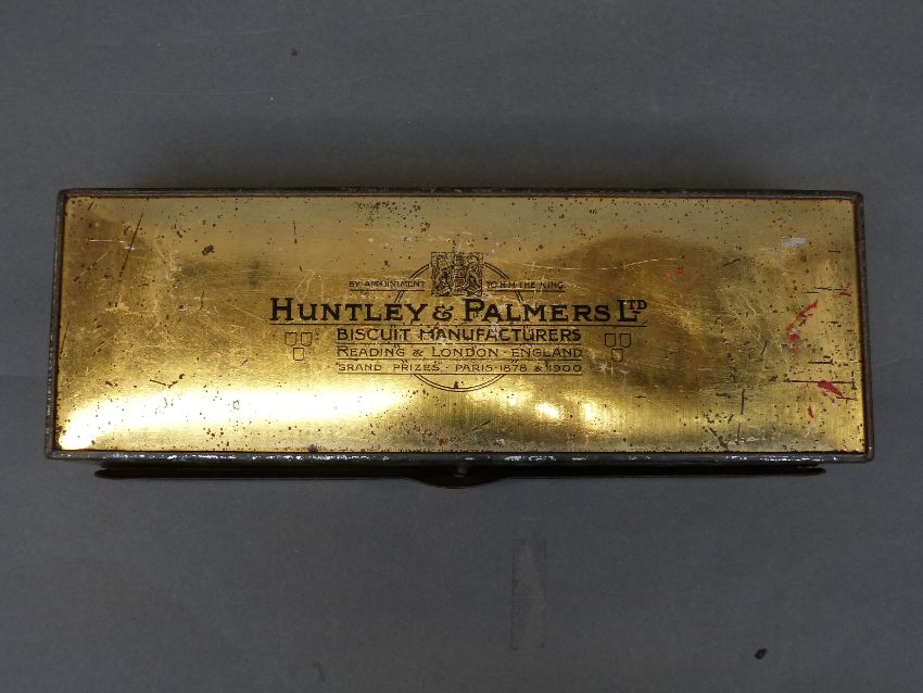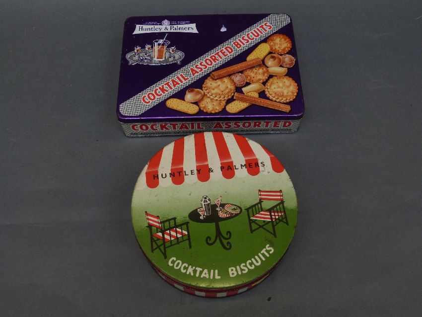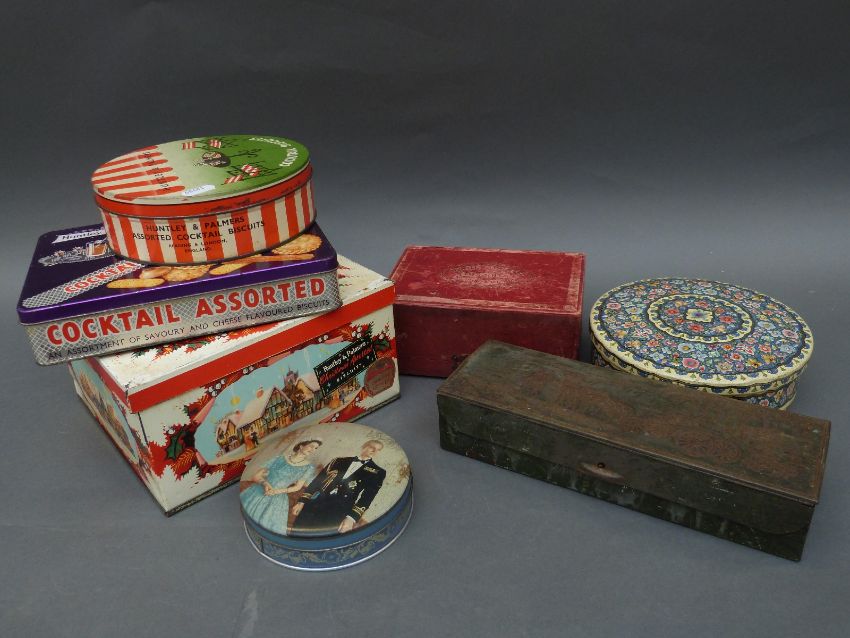 A collection of Huntley and Palmers biscuit tins to include assorted cocktail biscuit tin, Christmas tin, embossed tin with a horse and carriage and an outer box marked Huntley & Palmer Biscuits, Reading & London