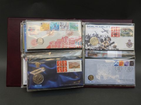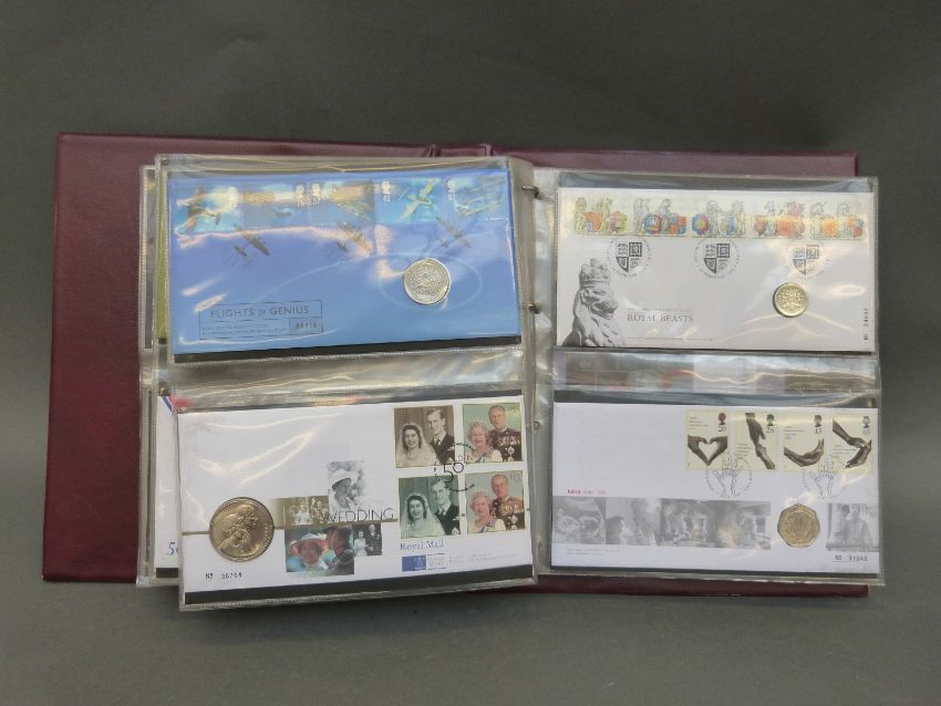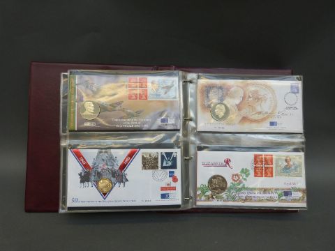 Three albums of GB first day covers, presentation packs and coin/stamp covers