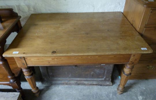 A pine kitchen table with end drawer raised on tapering octagonal legs (H71 x L109 x D74cm)