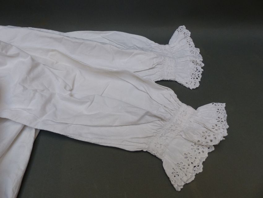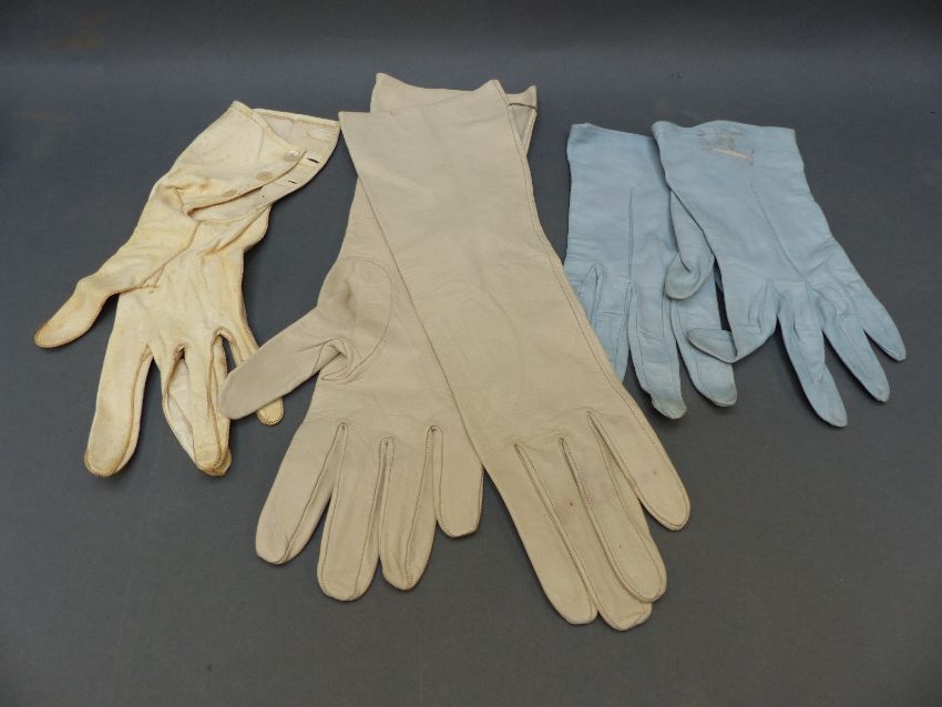 A vintage cotton night gown and two pairs of kid leather gloves