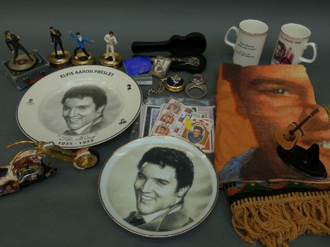 A collection of Elvis Presley watches, ceramics, stamps, models etc