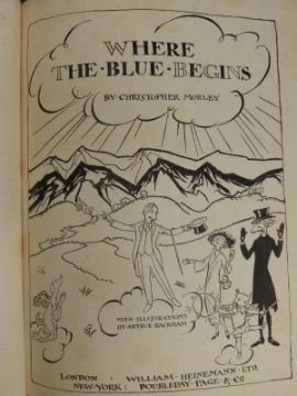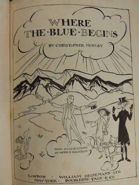Arthur Rackham illustrated Christopher Morley, Where the Blue Begins (New York, Doubleday, 1922) 4 colour plates, 16 drawings, blue cloth. First American edition, first printing