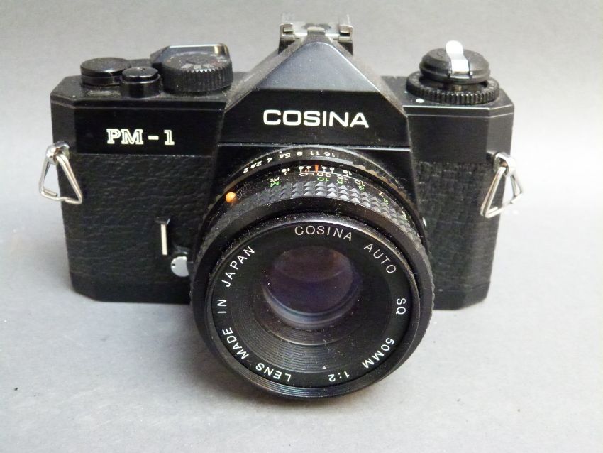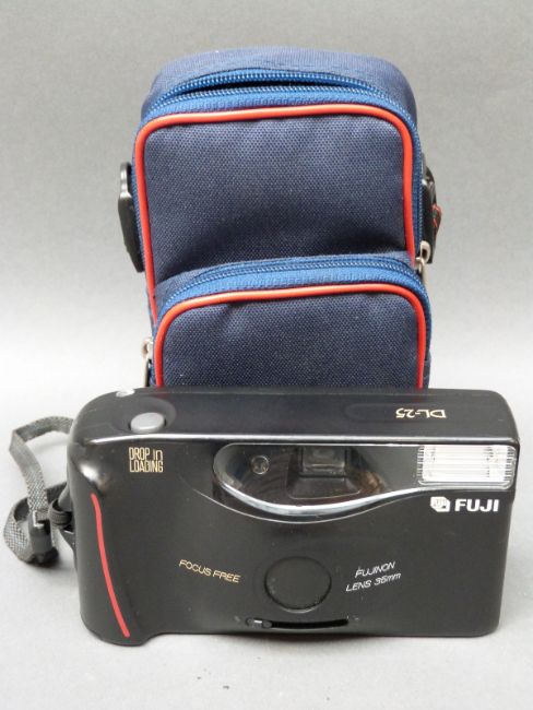A collection of cameras, lenses and accessories to include Olympus OM 20, Fuiji DL25 35mm, Sigma wide angle lens, Canon Power Shot A470 digital camera etc.