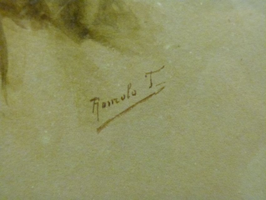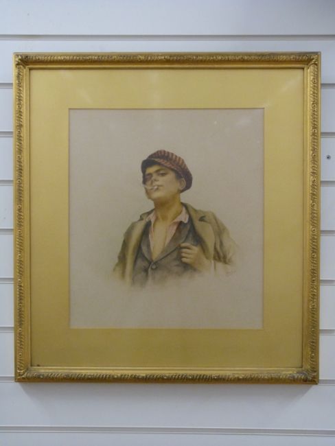 Indian School watercolour of a young man smoking, signed lower right possibly Romulu J, 43 x 38cm