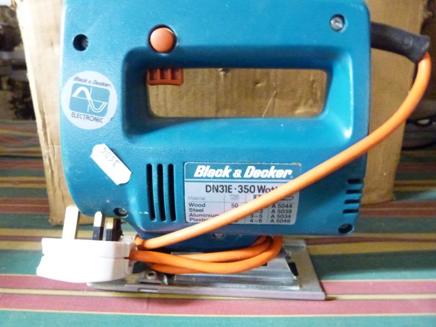 A Black & Decker router, Wolf planer, Black & Decker jigsaw and a sander