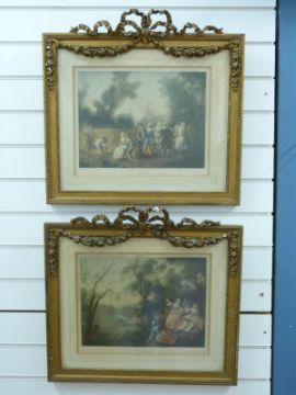 A pair of prints in ornate gilt frames Le Printemps and L'Ete, each 27 x 37cm