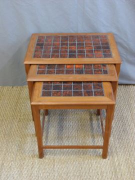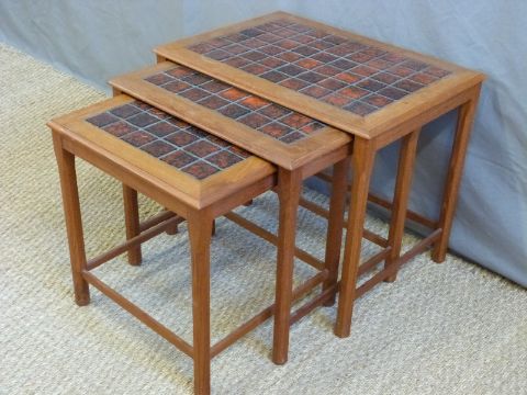 A retro nest of Danish tile inset hardwood tables (H47 x W58 x D42cm)