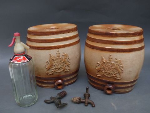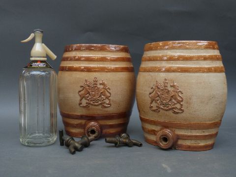 Four Doulton Lambeth bar top stoneware dispensers or barrels