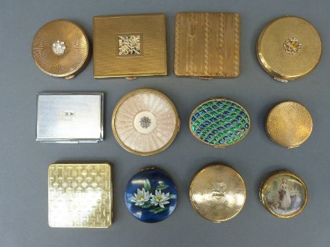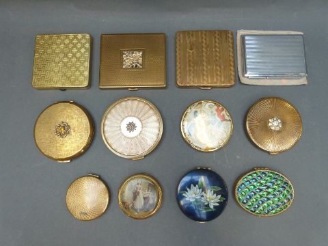 Twelve compacts including Mascot, Kigan, Avon, Helena, Rubinstein, Coty, Stratton and Yardley