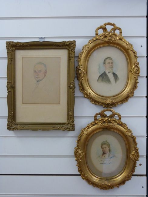 Three 19th/20thC watercolour portraits two in gilt oval frames