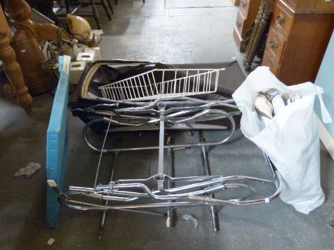 A Silver Cross pram with two tone brown body and Marlands pram canopy in original box