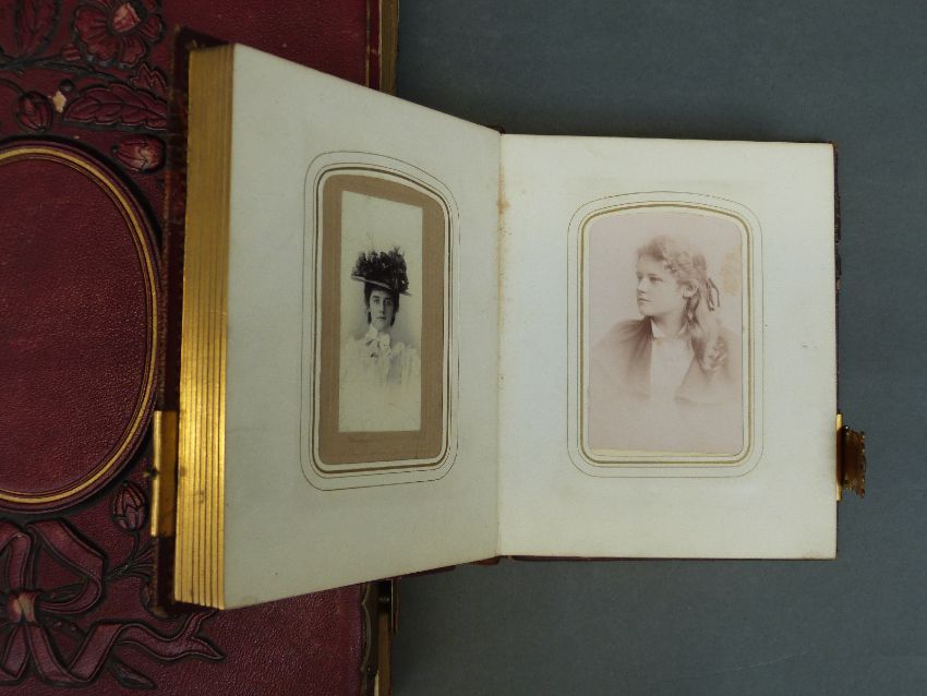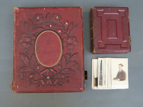 Two Victorian photo albums and contents, an empty album and a quantity of loose portrait photographs