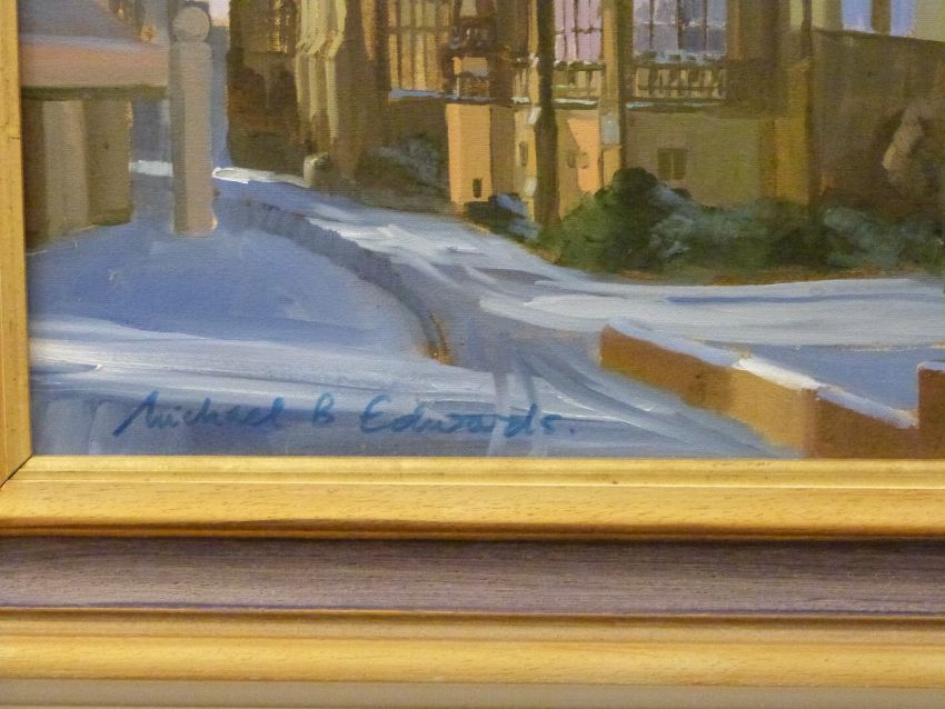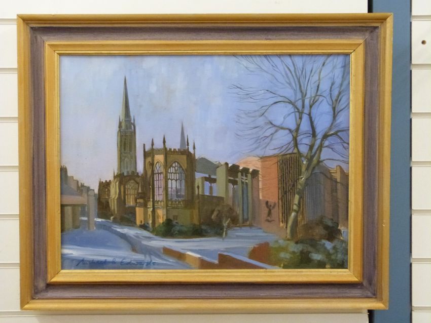 Michael B Edwards oil on canvas "Coventry Cathedral", 43 x 58cm