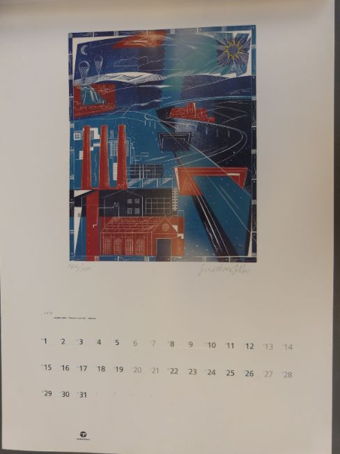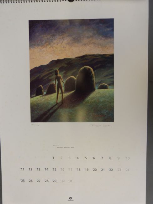A Creative Power 1991 limited edition (146/150) calendar, artists comprise Chloe Cheese, Robert Heeson, Peter Ferris, George Logan, Paul Leith, Jonathan Gibbs, John Miles, Paul Peter Piech, Lynne Ryding, Gary Powell and Charlie Waite, each artwork signed by the artist and signed to the cover within an embossed map, overall size 69 x 49cm