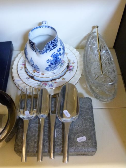 A quantity of metalware including Bodum teapot, cased cutlery, ceramics, glass etc