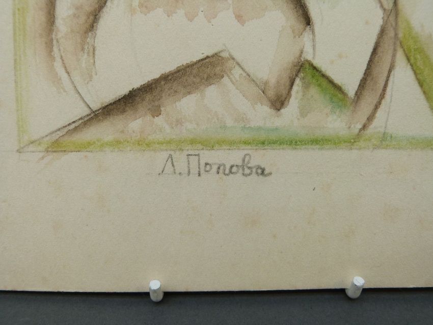 Russian constructivist pencil and watercolour sketch bearing signature to lower edge suggesting it to be Lyubov Papova, 30 x 20.5cm