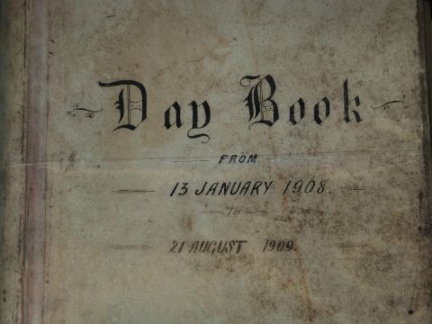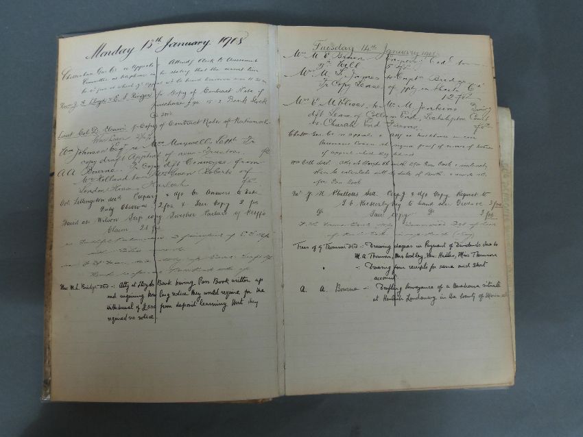 A solicitors day book 1908/1909 probably Winterbothams in Stroud, together with a late 19th/20thC indenture relating to freeholds in Cheltenham between Ernest Acton Kite and Charles Moorey