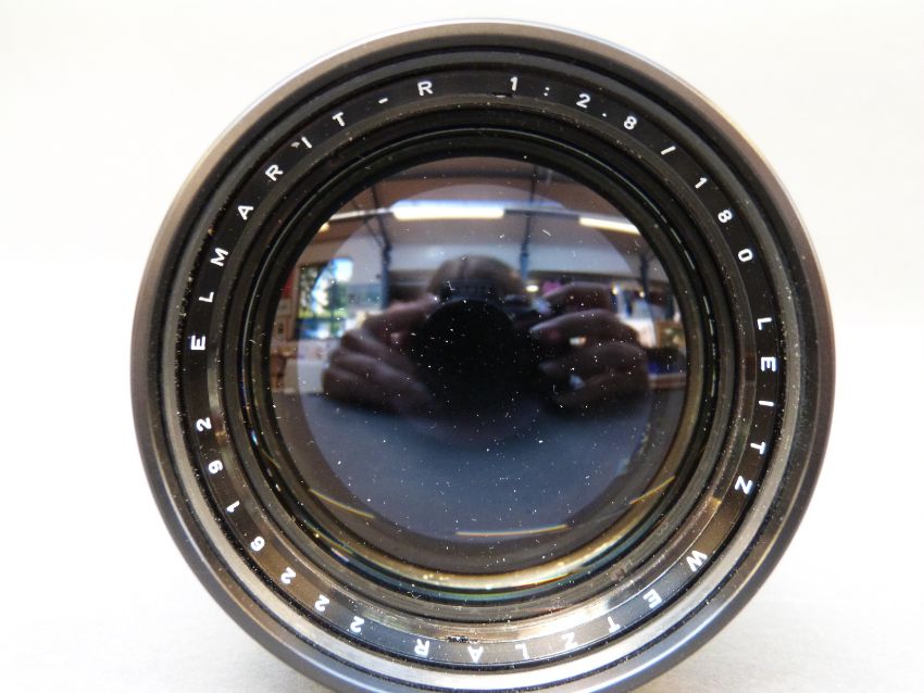 Leitz Wetzlar Elmarit 180mm f2.8 R series lens S/N 22261 xx c/w both cahs in pouch